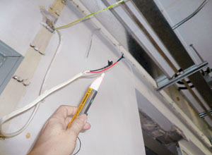 当地盘内的电力装置安装工程接近完成阶段时,由于部分电路可能已经通电,电业工程人员进行工作时更需加倍留神。在施工前,必须待有关电路已被隔离,并使用认可电压显示器确定电路已不带电后,方可开始工作。