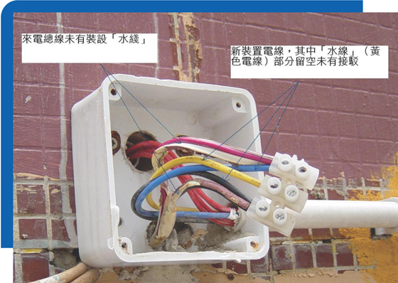 黄女士在顶楼住所的天台设有电力装置及使用洗衣机,过去十多年都没有出现问题。最近天台重新装修改动,并将天台的旧有电力装置拆卸,重新安装照明光管及三个防水插座,但由住所连接到天台的供电电线则保留未有更换。