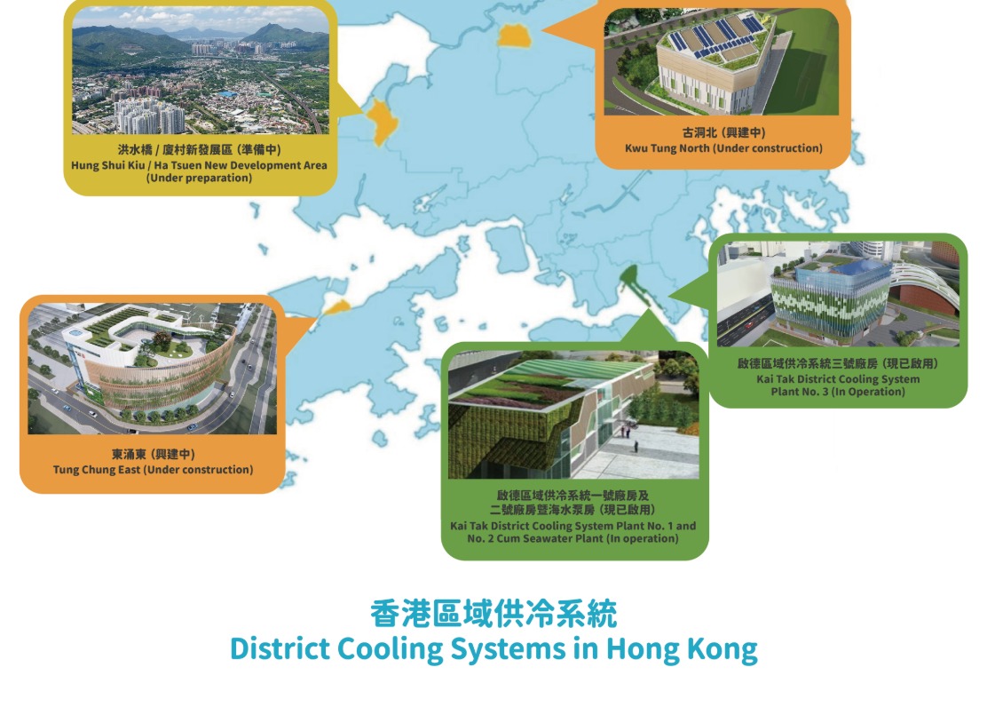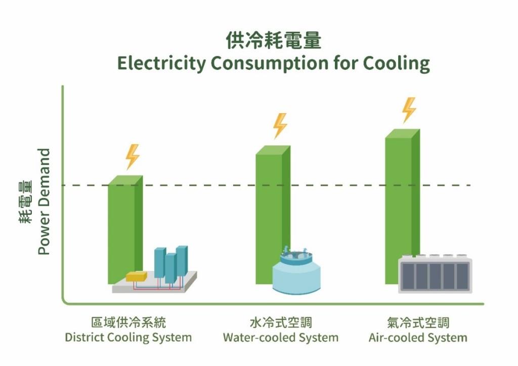 - 采用区域供冷系统的建筑物无须装设空调机组的散热器和制冷机组,因此亦可避免这些机组运作所引致的噪音及震动。同时,有更多空间进行绿化及安装可再生能源设备;