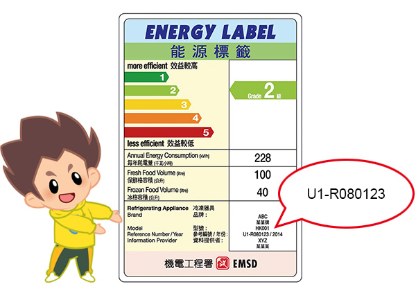 由2015年11月25日起,在本港市場供應的上述3類電氣產品,必須附有新能源效益評級標準的能源標籤。新級別的標籤會在參考編號前加上「 U1 」字頭,其他樣式則保持不變,例如: