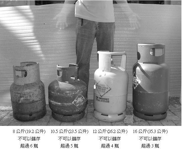 留意在家中或商店內存放的石油氣瓶(包括空瓶)數量,確保其總容水量在130升以下(