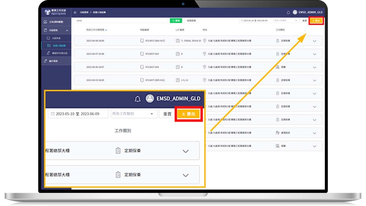 數碼工作日誌的網上平台新增了「匯出」功能,讓負責人和承辦商把工作日誌記錄以Microsoft Excel的形式匯出,方便用家運用工作日誌的資料作進一步分析,做好設施管理。